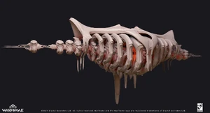 Murex are Sentient vessels created as a mobile settlement or outpost of sorts. They may also be used as places of worship, as the Murex are filled with prayer altars and statues. The Murex have suffered damage due to the many eons spent drifting in space. However, they are able to rebuild themselves by using repurposed debris, similar to the Sentient Mothership, Praghasa.