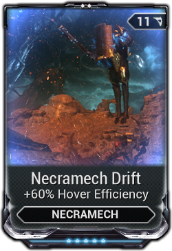 Necramech Drift is a Necramech mod that increases hover efficiency, decreasing the rate at which the engine bar is consumed for hovering.