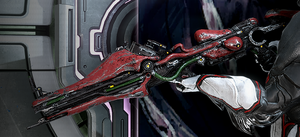 Blast rockets that explode over a small area, but can also stagger the player if they aren't careful. A slower projectile version of this is used by the Bombard, though the homing ability isn't present on the version used by the Tenno. It can be researched from the Chem Lab in the dojo.