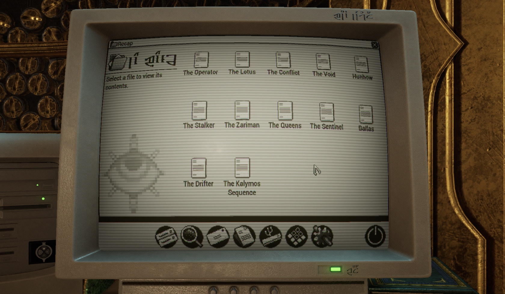 Inside the Sanctum Anatomica, a Pom-2 can be seen next to the original Loid. Interacting with it will provide access to the Operator Report logs, which provide background information and lore on past events.