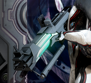 Corpus tri-barrel laser minigun unlockable through Energy Lab Research in the Dojo. It is used by Corpus Techs and sometimes by Corpus Wardens throughout Corpus-controlled regions, and is effectively the Corpus standard machine gun.