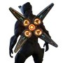 This techno-organic syandana fits over the shoulder, giving your Warframe a unique, spiked silhouette. | |