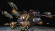 They appear in small to medium groups, mainly focusing on dealing long-distance damage to the Railjack. Their hulls are weak, and they can be taken down fairly quickly with the ship's turrets. Their defenses are near impenetrable if using an Archgun that is not strong enough, and a direct approach should be taken into consideration before deploying out of a Railjack. They are armed with blue colored missiles that homes in on the railjack and deal extra damage to shields. There are three types of Taktis that will be encountered over the course of progressing through the Proxima planets of the Origin System that have varying color palettes as well as unique drop tables.