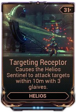 - Upgrading the mod allows Helios to fire more "Glaives" in rapid succession before it needs to reload.